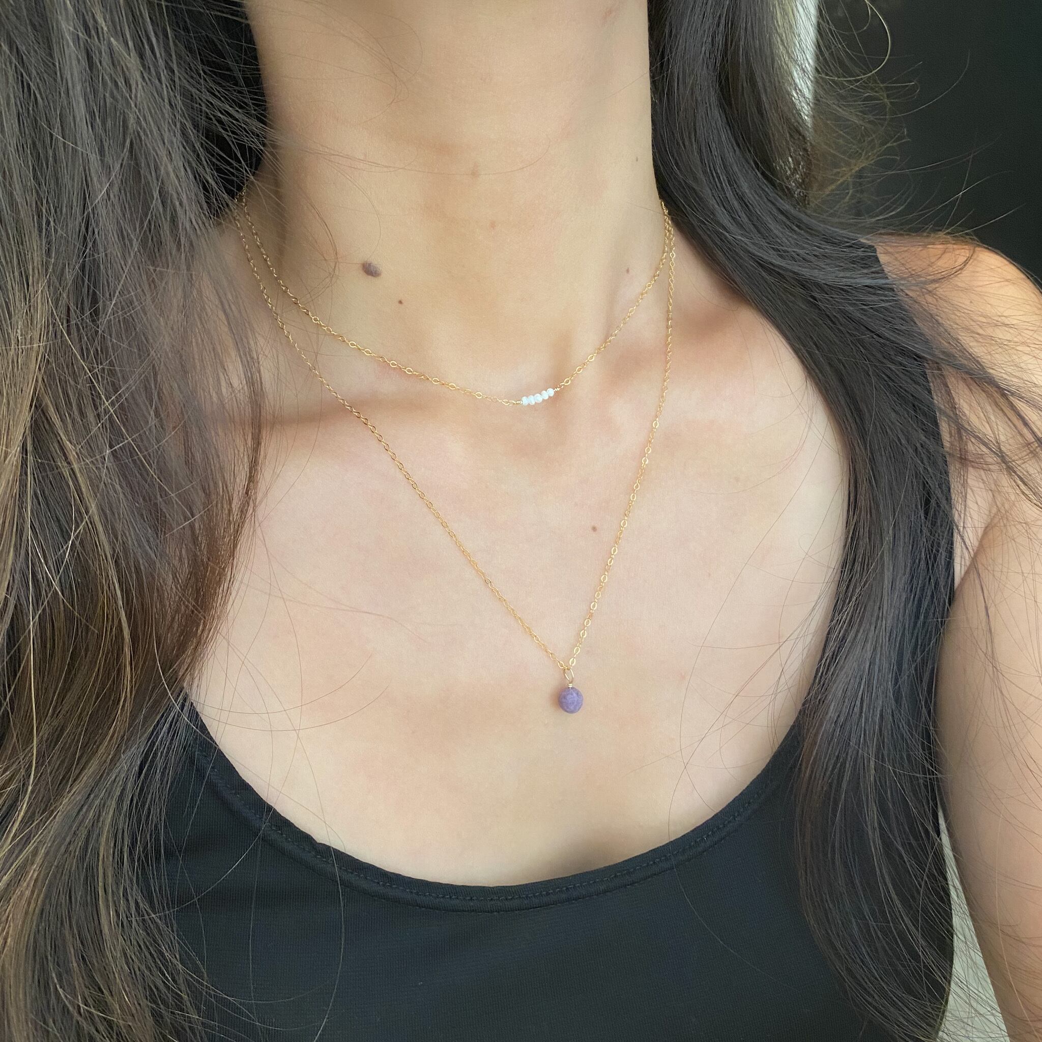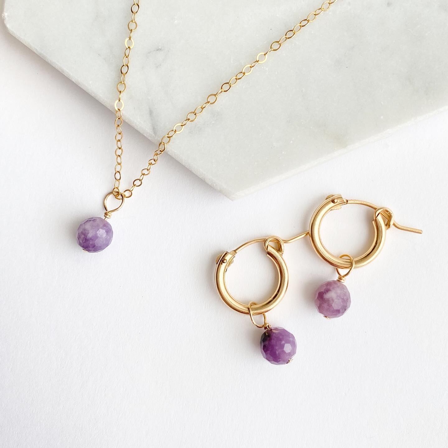 Necklace & Hoop Earrings with Lavender Lepidolite