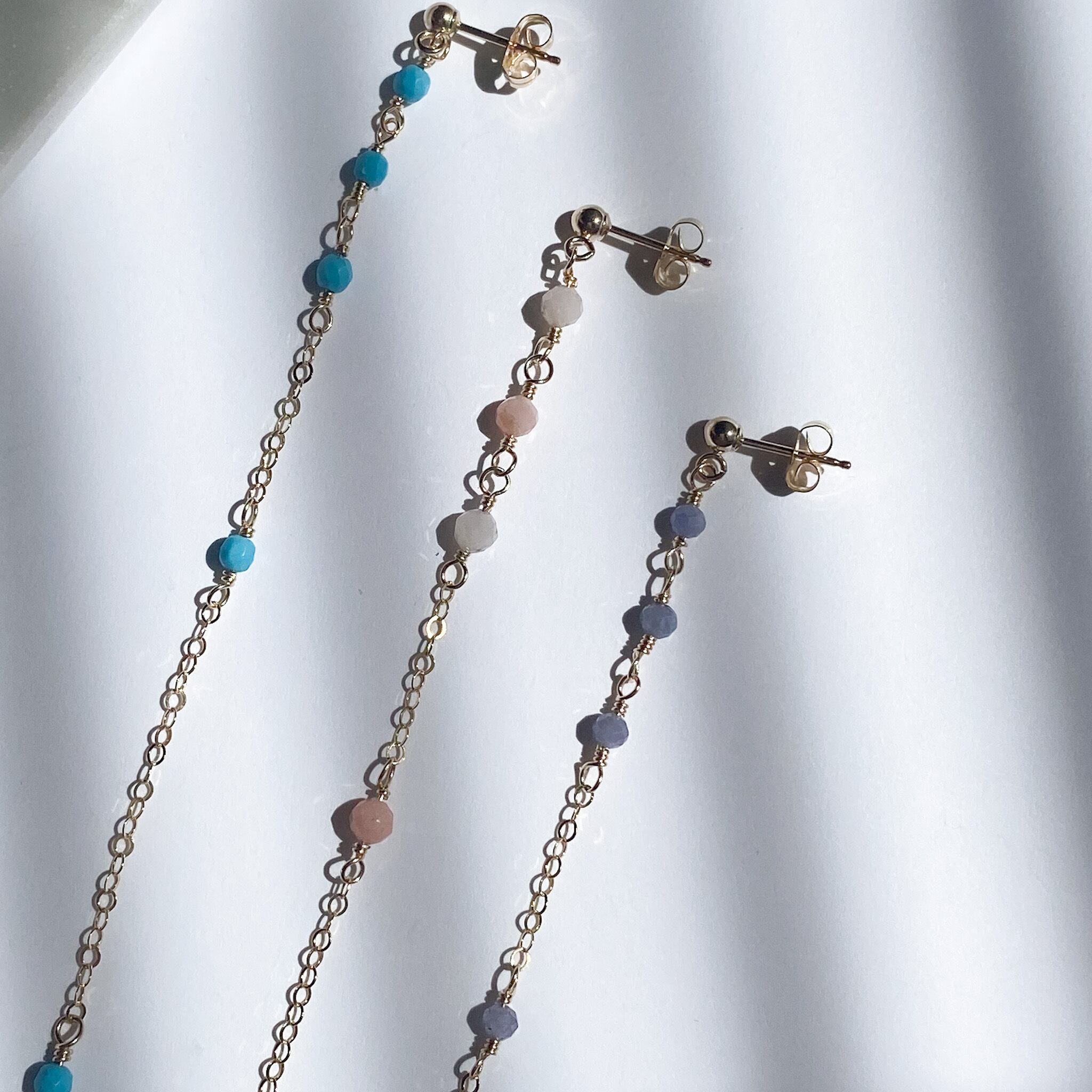 チェーンと天然石に光が当たるとキラキラと反射して、とても存在感があります。