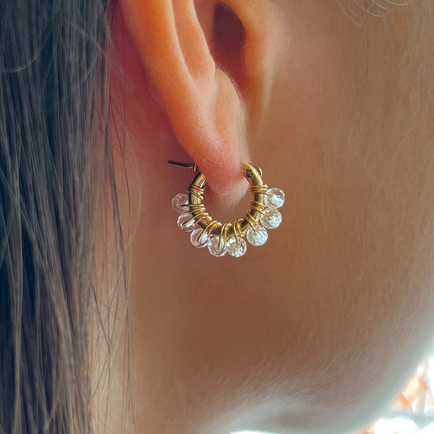 シンプルだけどキラキラ…✧˖°のフープピアスに仕上げました。