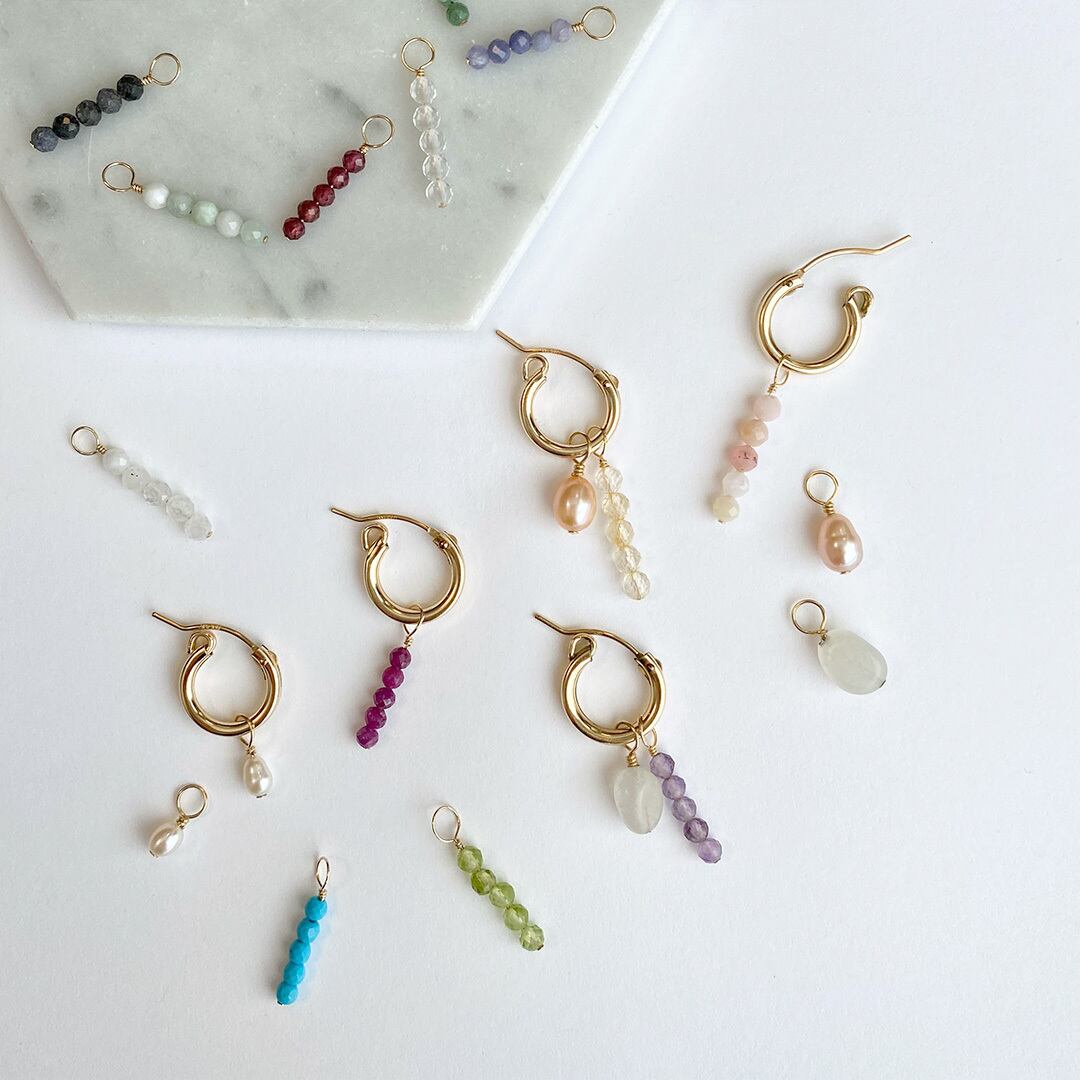 フレッシュウォーターパールとオパールがセットになったフープピアス。