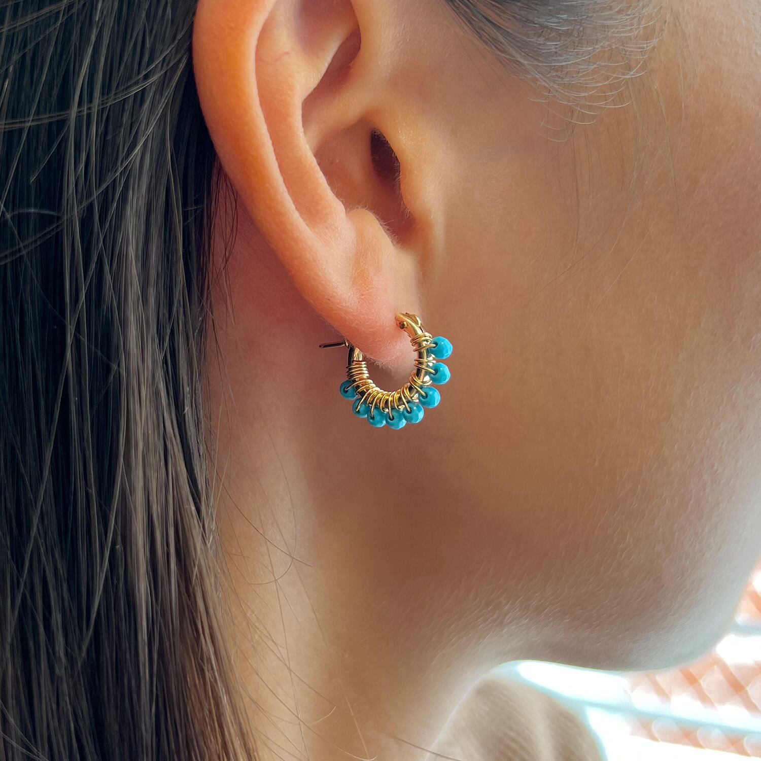 ターコイズのフープピアス